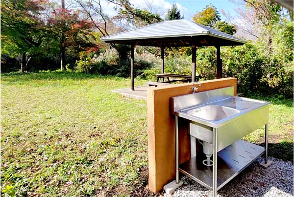 屋根付きのスペース”あづまや”もあるので強すぎる日差しや多少の雨天時でも大丈夫!